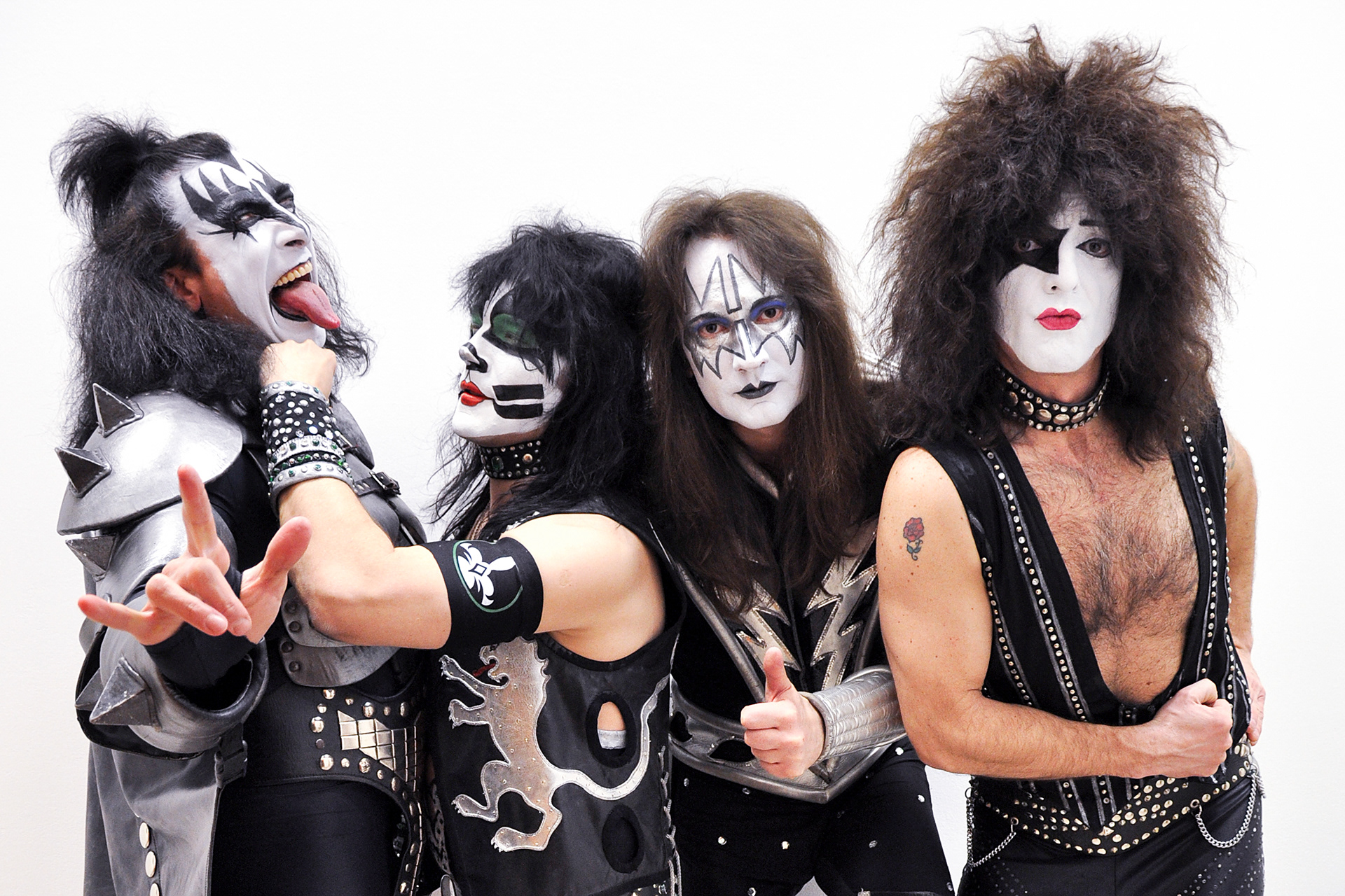 Régebben nagyon sokat fotóztam koncerteken. Mondhatni, a koncertek miatt kezdett érdekelni a fotózás. Mostanában a zord metálzenekarok helyett inkább szép hölgyeket, divatot, portrékat fotózom, de voltak idők, amikor fekete hajjal, szintén fekete rocker szerelésben, az első sorból koncerteket fotóztam. Na valamikor ebben az időszakban készült ez a fotó is. A KISS Forever Band zenekar már készen állt a koncertre és szerettek volna egy csoportképet az öltözőben. A helyszínnek nagyon szép tágas öltözője van, és találtunk egy homogén fehér falat is. Volt nálam vaku is, így érhettünk el közel olyan hatást, mintha műtermi lenne a kép.
