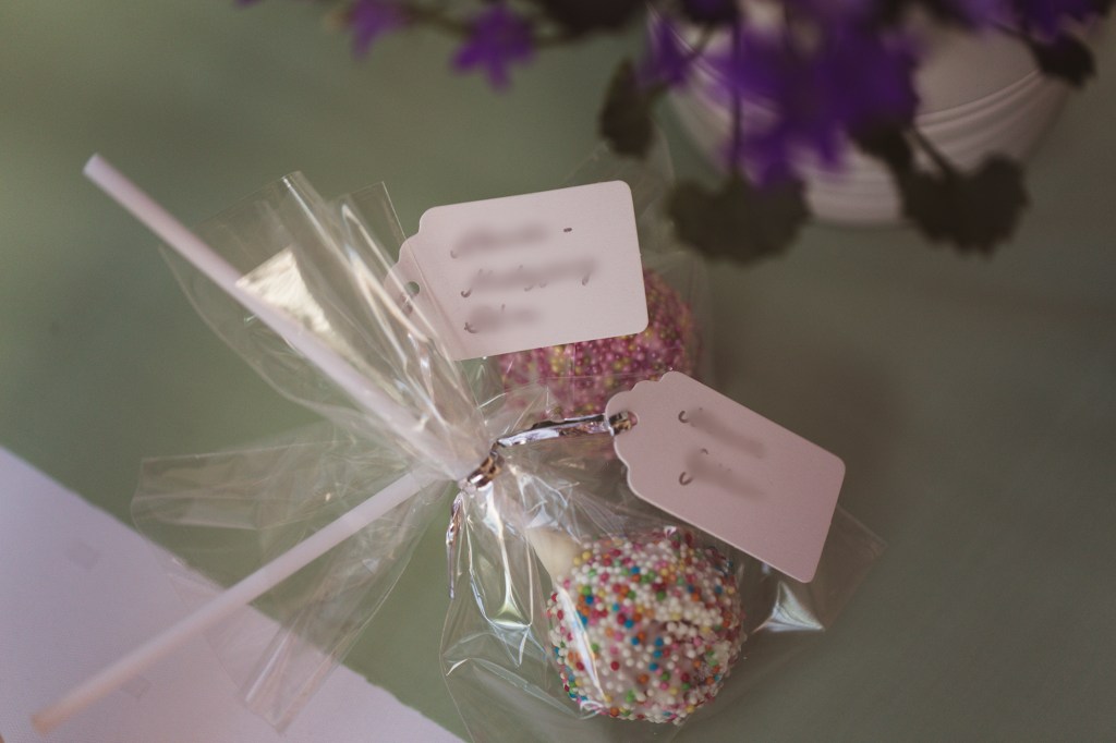 Az ajándékot a menyasszony készítette. Süti-nyalóka. Ha jól emlékszem piskótát forgatott cukormázba és apró, színes cukorgömbökbe. Elraktam emlékbe, érdekes módon még mindig jól néz ki, pedig lassan 4 hónapos. Megenni már nem merném, de dekorációnak, emléknek imádom.