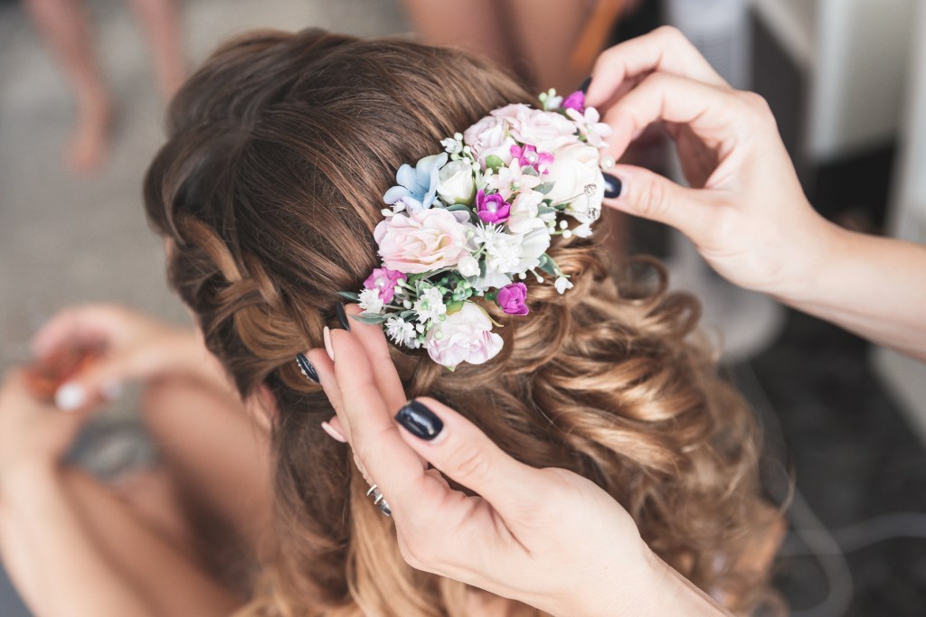 Dórának csodásan állt ez a félig feltűzött, hullámos, fonásokkal díszített frizura. A virágos fejdísz csak feltette az i-re a pontot. 🙂