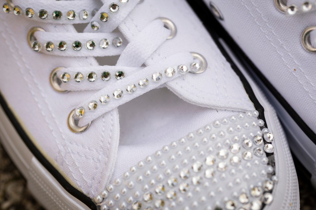 Micsoda kategória! 🙂 Kifejezetten azért, hogy megmutassam milyen szuperelegáns menyasszonyi cipőt varázsolt Zsófi egy fehér tornacipőből.