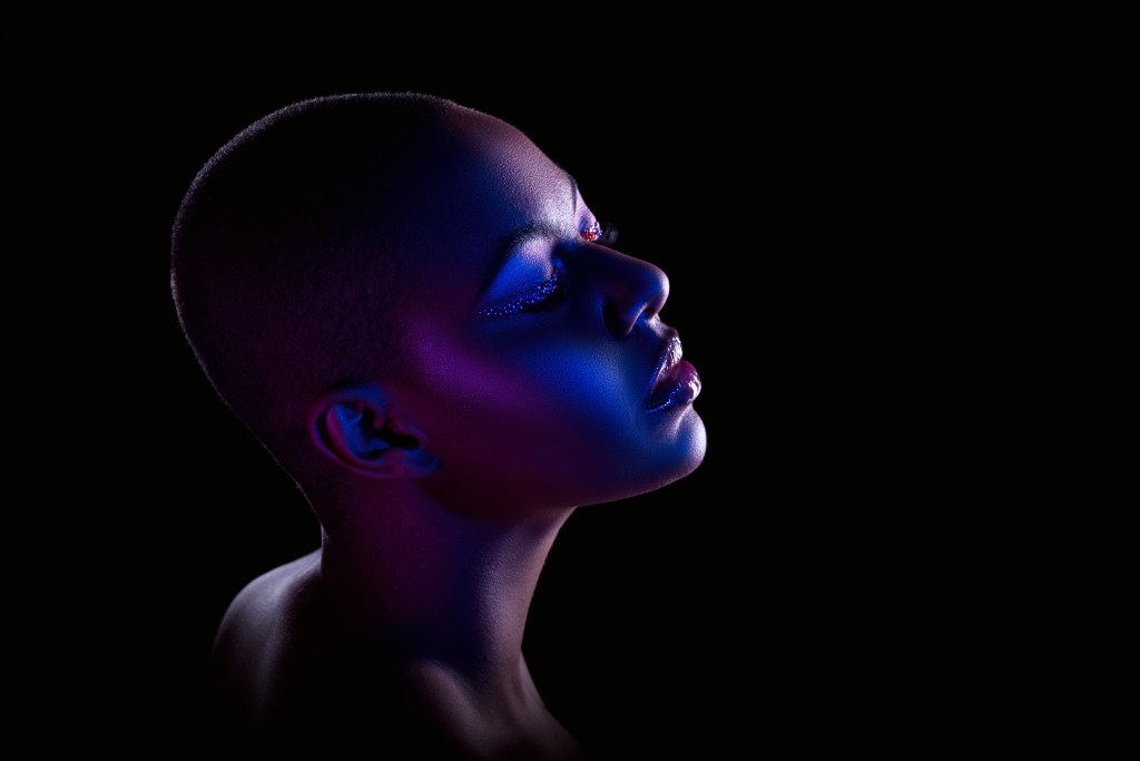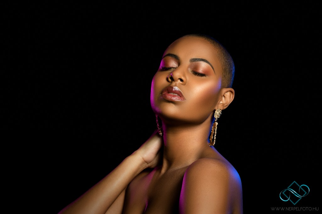 Fotózásunk első felében a színes fények domináltak, kezdetben egy natúr sminkkel.
