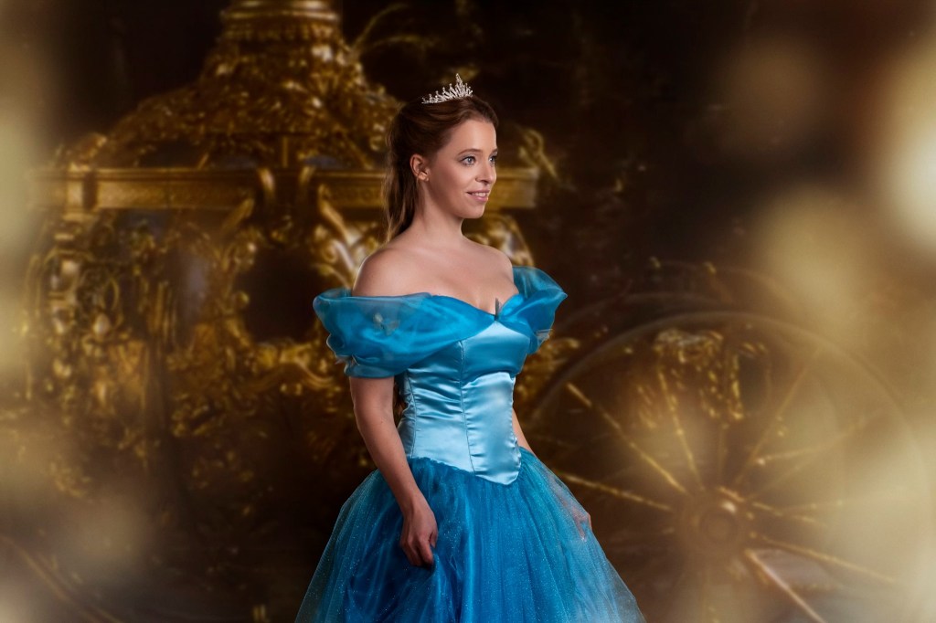 Amikor terveztük a Hamupipőkés fotózást, egyértelmű volt, hogy az ikonikus kék ruhában a Disney film jeleneteit, plakátjait jelenítjük meg. Így született meg a ruha átalakulása, a lépcsőn szaladós jelenet, valamint az aranyló tökhintó előtt készült kép is.