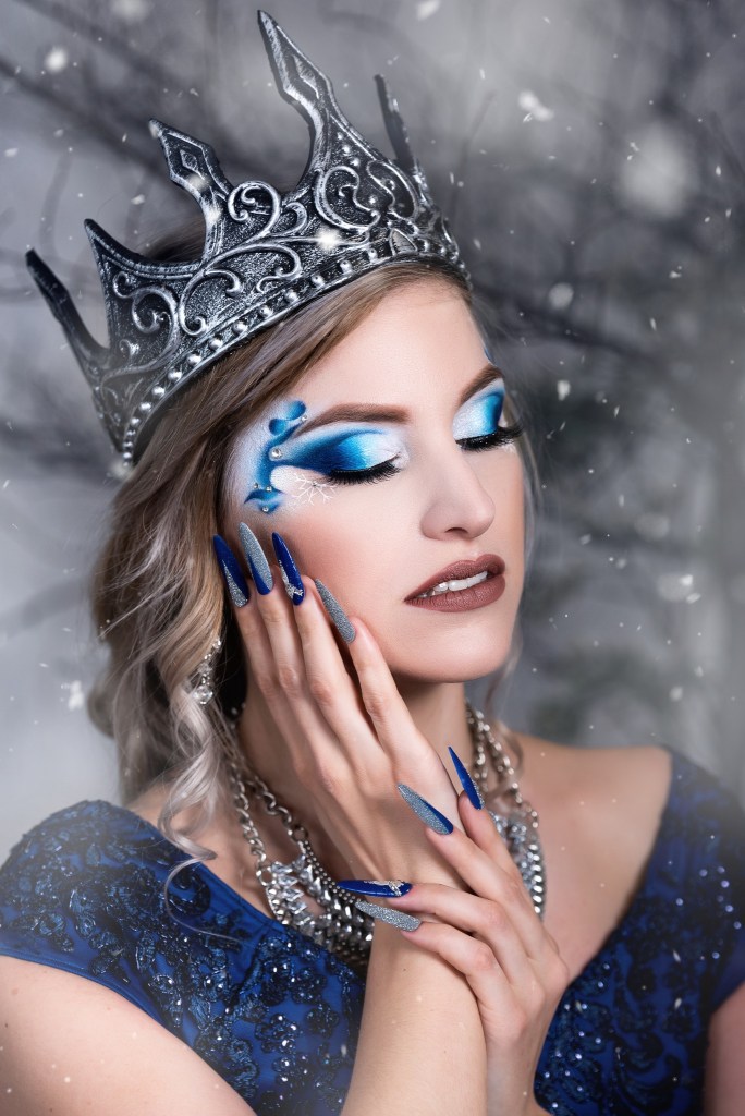 Ha elképzelhetném magam királynőként, biztosan a “sötét oldalra” állnék, hiszen az arckarakteremhez és a színtípusomhoz sokkal inkább illik a hangsúlyos smink és a hideg árnyalatok világa. Ráadásul ha megnézzük a Disney élőszereplős meséit, a “gonosz királynő” karakter szinte mindig dögösebb, mint a főhős. Kriszti is hasonlóan vélekedett, és a jégkirálynő karaktere tökéletesen illett hozzá. Kriszti személyisége, valamint a sminkje és a ruhája olyan magabiztossággal és erővel töltötte meg a teret, amely valóban életre keltette a karakterét, tükrözve ezt a hideg, jeges, téli hangulatot. /Modell: Szűcs Krisztina, MUA: Sigulinszki Laura, Ruha: SPirit Clothes Design, Frizura: Csehi Dóra, Körmök: Vetrik Nails/